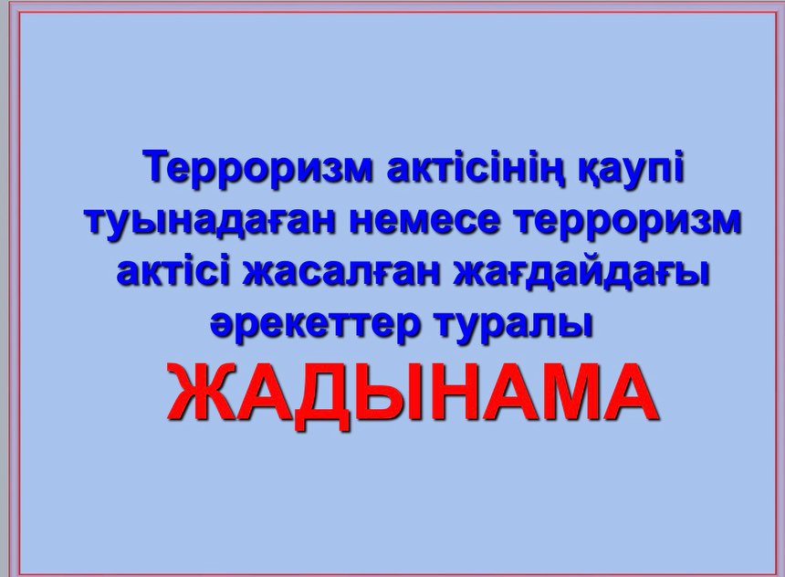 Терроризм актісінің қаупі туындаған немесе тероризм актісі жасалған жағдайда әрекеттер туралы жадынама